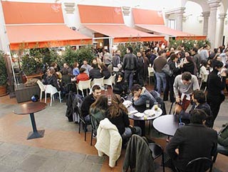 Il freddo improvviso di questi ultimi giorni non deve aver scoraggiato i partecipanti, che alle 10 di sera sono quasi tutti all'aperto, a mentelocale e sotto i portici di Palazzo Ducale. Una grande distesa di ragazzi, punteggiata dalle magliette e dalle felpe bianche con il logo del festival, che sembra comprendere quasi tutti i 550 ragazzi che hanno collaborato a quest'ultima edizione. Mangiano e bevono per celebrare questi dodici giorni di fatiche.